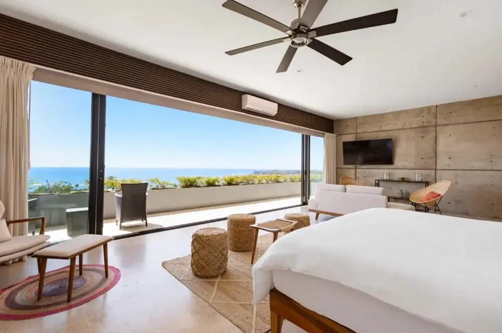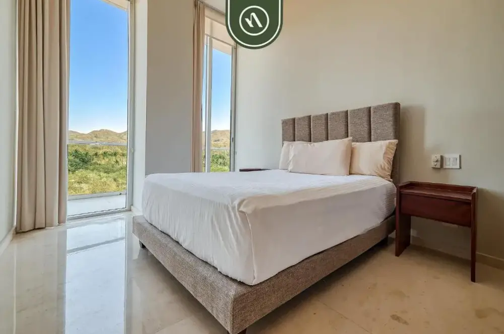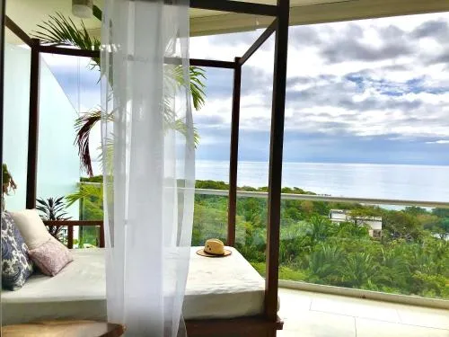 More information about BolongoBeachfront Location: Oceanview Penthouse in Punta Mita offers direct beachfront access with stunning sea views. Guests can relax on the sandy shores or take a dip in the outdoor swimming pool. Spacious Accommodations: The apartment features two bedrooms and a bathroom, providing ample space for a comfortable stay.