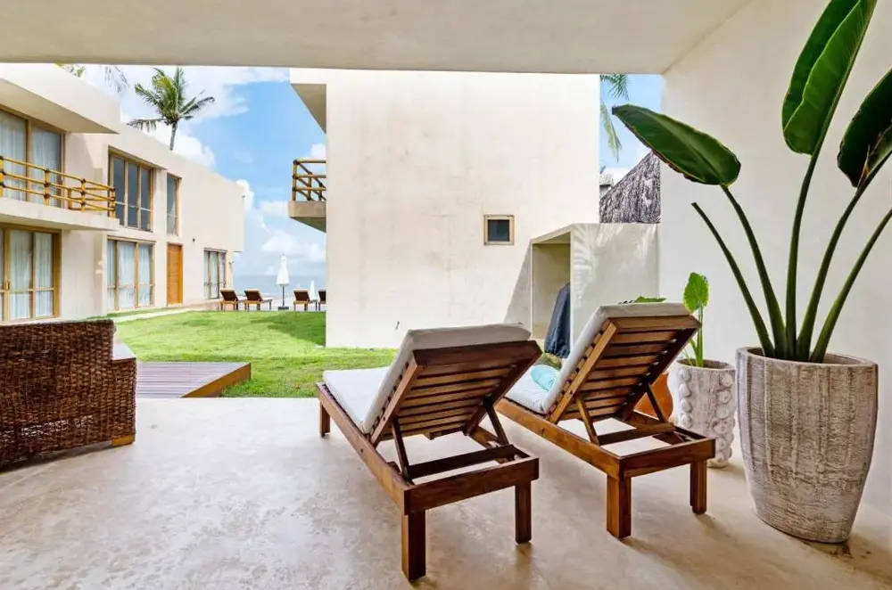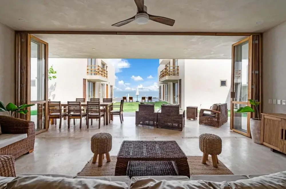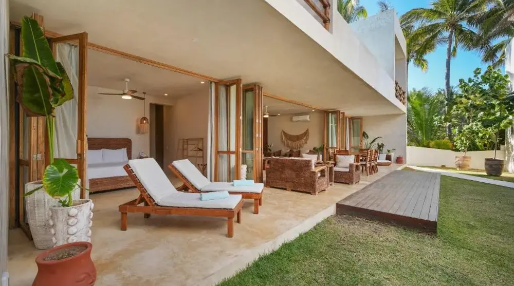 More information about Beachfront Villa Punta Mita LitibuBolongo Luxury Condo Elí, front beach - Punta Mita offers direct beachfront access with a private beach area, garden views, and a rooftop swimming pool. Exceptional facilities include spa, sauna, fitness center, sun terrace, and a restaurant serving seafood and sushi, plus a bar and free WiFi.