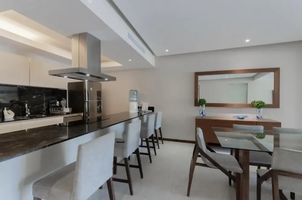 16 miles from Aquaventuras Park in Higuera Blanca, Amplio departamento Vibrantus Bolongo Beach by Kivoya provides accommodations with access to wellness packages, fitness room, and steam room. This beachfront property offers access to a terrace and free private parking. The apartment features an infinity pool with a pool bar, as well as a spa facilities and an elevator.