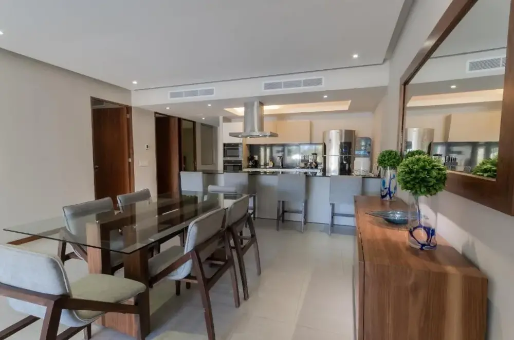 More information about Departamento de Lujo en Bolongo, Punta de MitaDepartamento Paradise Punta Mita, Beach Front offers a spacious four-bedroom apartment with a terrace, private pool, and free on-site parking in a beachfront setting. Modern amenities include air-conditioning, a fully equipped kitchen, free WiFi, and a terrace for relaxing.