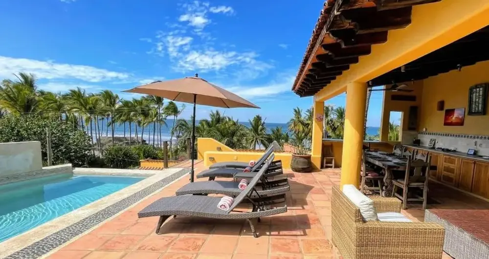 More information about Casa Coral, Luxury BeachfrontTwenty Steps from Litibu Beach at this Hideaway offers direct beachfront access in Higuera Blanca. Guests can relax by the swimming pool with stunning views or unwind on the sun terrace. The property features a lush garden and free WiFi throughout. Spacious accommodations include four bedrooms and five bathrooms, with a living room and a fully equipped kitchen.