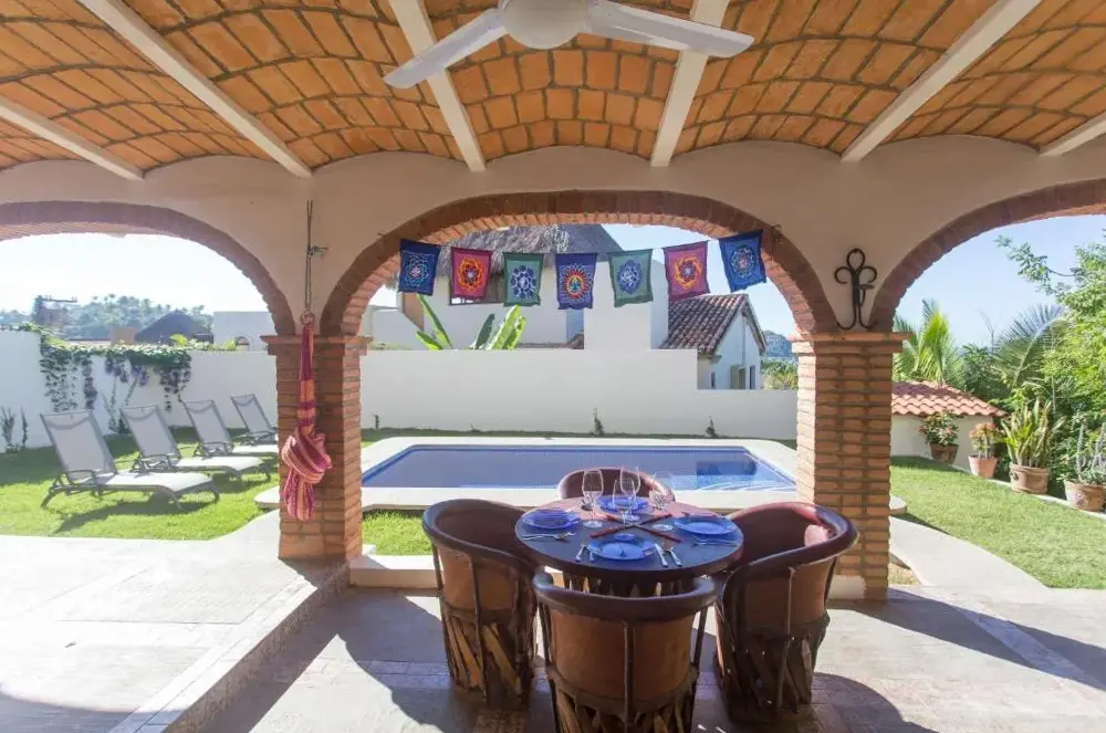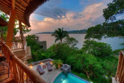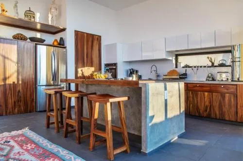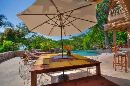 Más información sobre Villas del Corazon - IguanaCasa Zen overlooking the Bay ofrece una experiencia de homestay con dos dormitorios y acceso a una playa privada, vistas al mar y aire acondicionado. Situada en Sayulita, cuenta con piscina infinita, terraza-solario y jardín. WiFi gratis en todo el hospedaje, además de kitchenette, patio y zona de comedor al aire libre. A 15 minutos caminando de Sayulita Beach, con aeropuerto Lic.