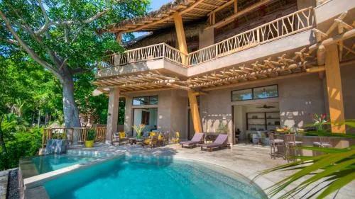 Más información sobre Sayulita Villas CantaresLa Casa Bambu Punta Sayulita se encuentra en Sayulita y ofrece alojamiento con aire acondicionado, piscina privada, vistas al jardín y balcón. Se encuentra frente a la playa y ofrece terraza y aparcamiento privado gratuito. Esta villa de 6 dormitorios cuenta con conexión WiFi gratuita, TV de pantalla plana, lavadora y cocina con minibar y utensilios de cocina.