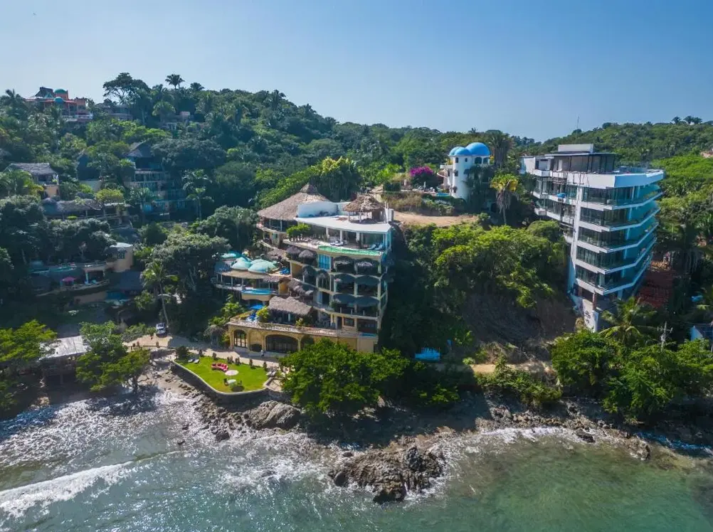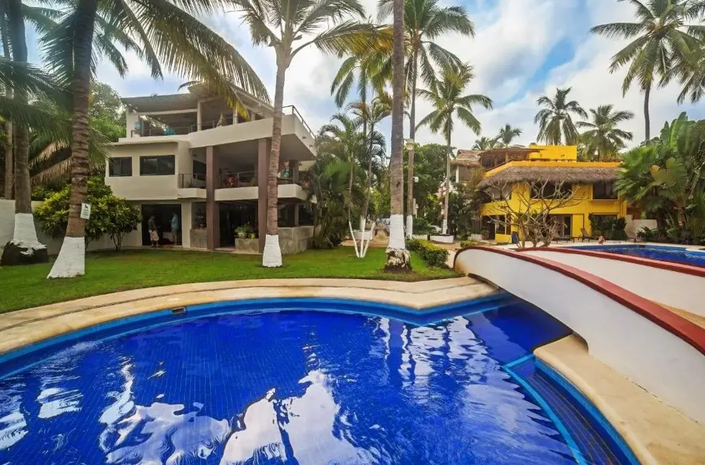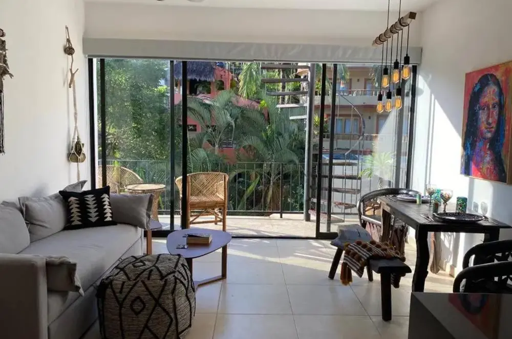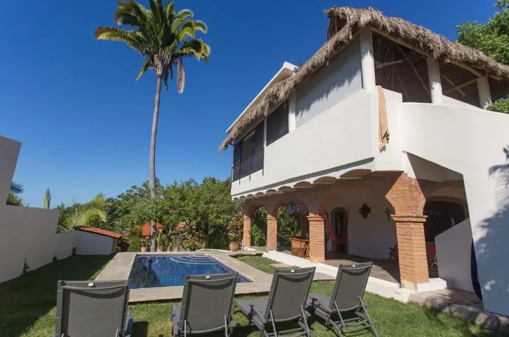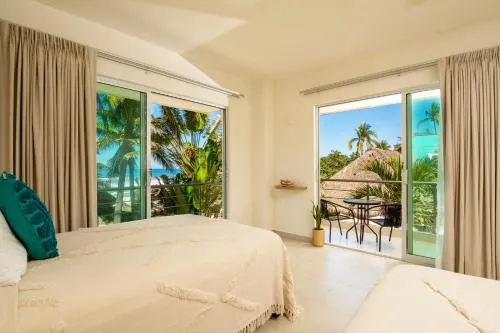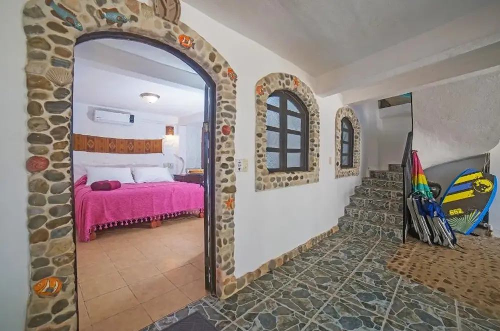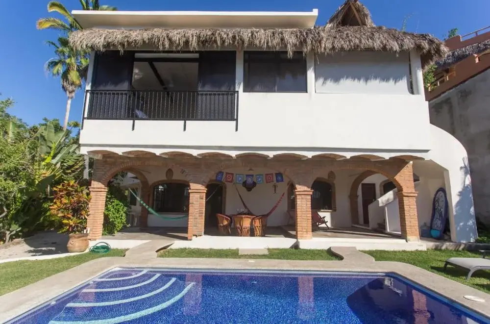 Más información sobre Ma-Jo Sayulita HotelVilla Dorado - Duplex ofrece ubicación frente a la playa en Sayulita con acceso directo al litoral y vistas impresionantes. Los huéspedes pueden relajarse junto a la piscina o en la terraza, ideal para actividades al aire libre. Alojamiento cómodo con tres dormitorios y tres baños, amplia sala de estar y habitaciones familiares para descanso; WiFi gratuito garantiza conectividad.